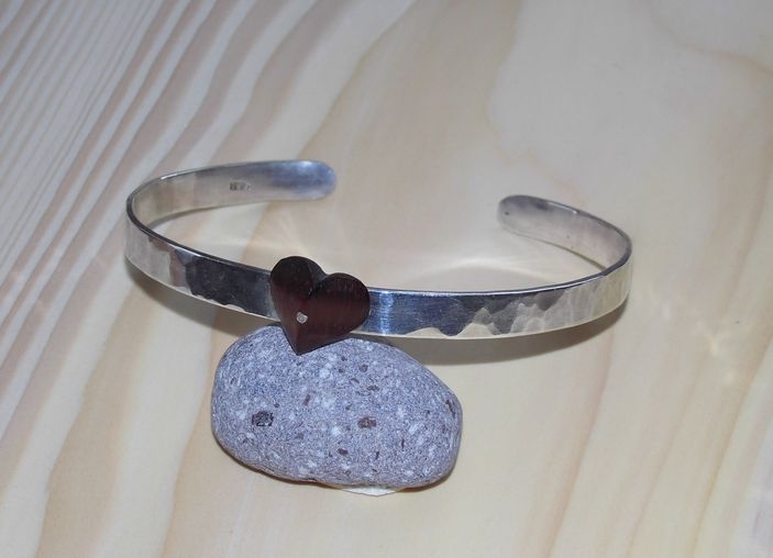 シルバーのバングルにブラッドウッドのハートをコラボ。