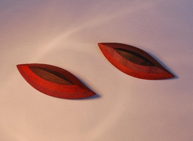 異なる色の唐木を3層に張り合わせ木の葉をイメージに形づくりました。