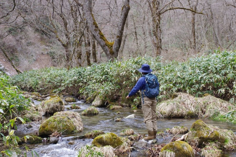 その後某川でテンカラ。(石原さん低温で活性の悪い中執念で岩魚ヒット)