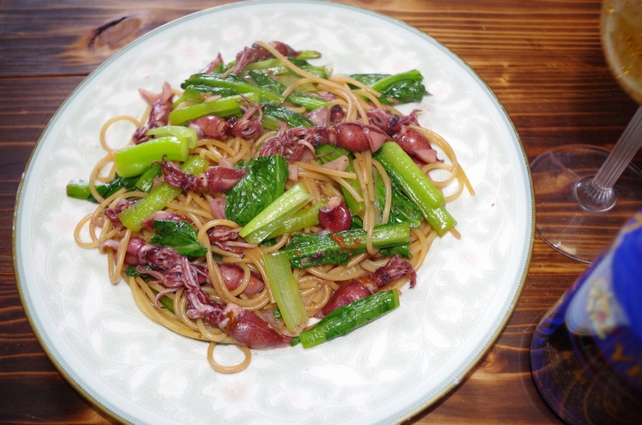 ホタルイカと小松菜のスパゲティも美味し(^ー^)ノ☆*.。