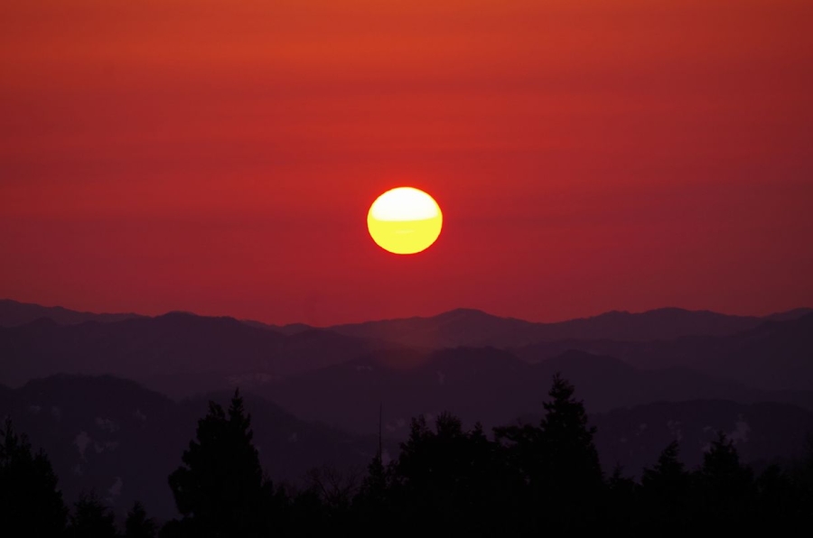 真真ん丸な夕陽