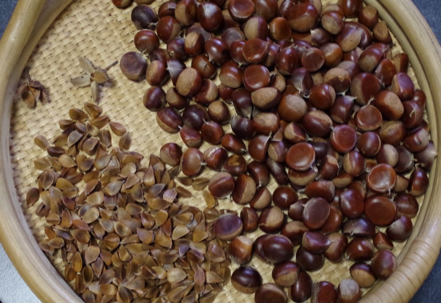 切り替えてブナと芝栗を収穫。 サルナシも見つけました。 鏡ヶ成でヤマブドウが鈴なりの木を見つけましたが高所で手届かず・゜゜(>_<)゜゜・ サルナシは完熟だったのでジャムにしました。