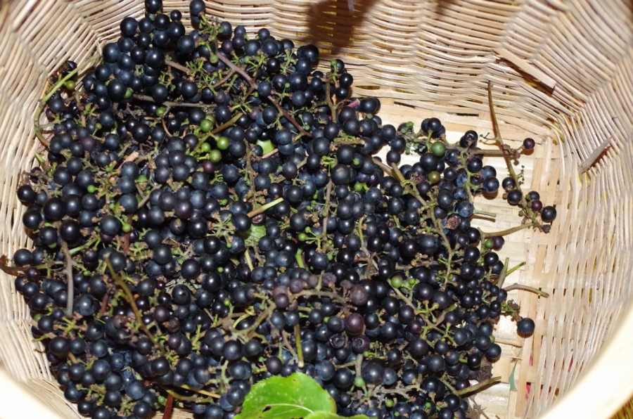 何とか数株は確保できたがめっちゃ!疲れるし時間もかかるのであきらめて他の場所に。 ありました目の高さに。頑張って採取するも軸をとれば1kgほど。 大人の葡萄ジュースを作る予定。