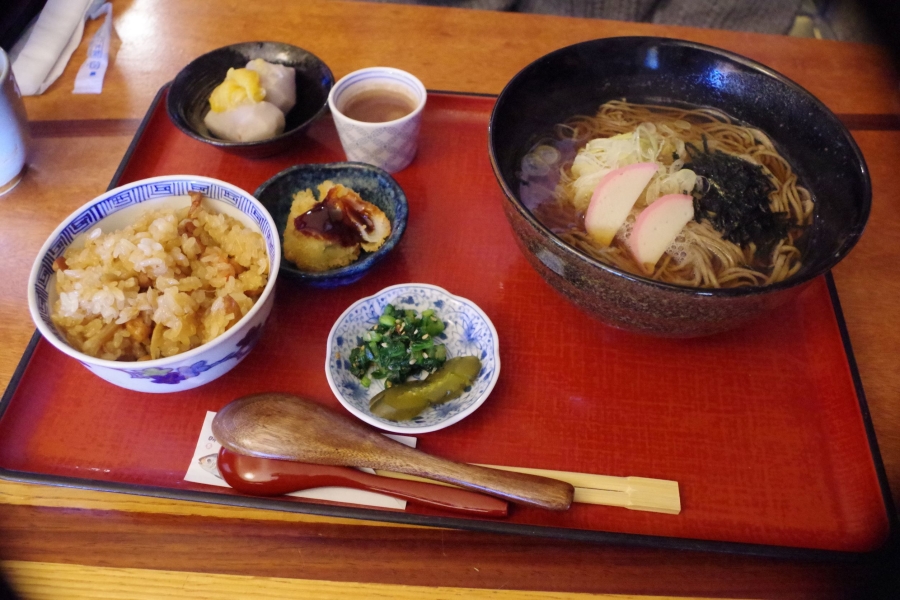 ぼくはおこわセットの冷たいそば。 純米八郷冷で行きたかったけど午前中なので自嘲。 二人は温かいそば。 茅葺の古民家をリノベーションしたお店で雰囲気も良くまわりのロケーションものんびりとした良いところです。