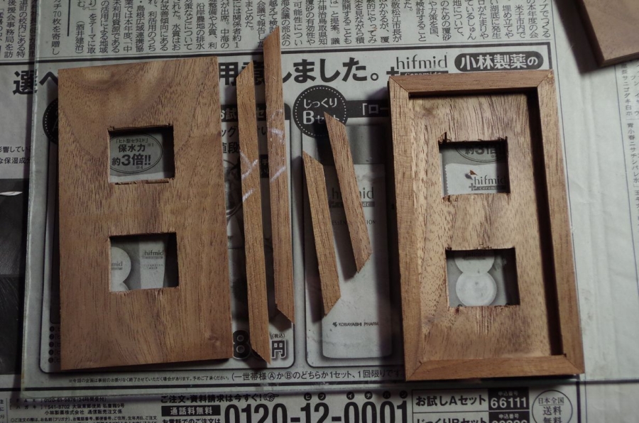 コンセントプレートを7.5mmのプレートをトリマーで金具のスペースを彫り込む方法からベースプレートを3mmにし4.5mmのスペーサーを留で取り付けるやり方に変えてみた。 治具を作り微調整をしまずまずの出来。