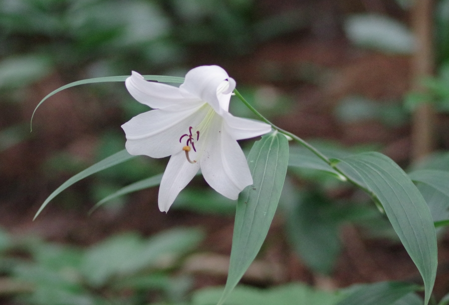 今年もわずかな期待しか持っていなかったのですが夕暮れの薄暗い森の中に一輪真っ白な光を放つ可憐な姿を見ることが出来ました。