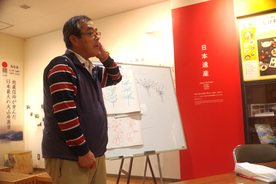 今日は大山自然歴史観主催のスケッチ教室「野遊び お絵かき」に参加。