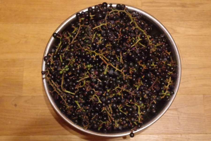 実をじくから外すのが大変なので明日やってくるチビたちに手伝ってもらい密造酒を作るには量がないのでジャムか果実酒の予定。