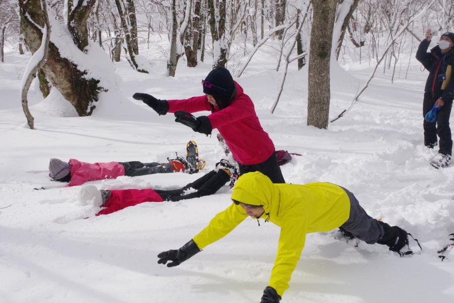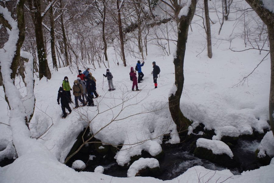 1mを超える豊富な雪とともに木谷沢の非日常をスノーシューで体感していただきました。