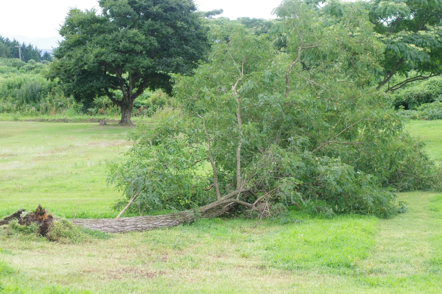 1ケ月前にハリエンジュ(ニセアカシア)が倒れているのを見つける。 樹高20m,直径30cm。 そこそこの大きさのの木の処理は大変で枝を払い土場に捨て、主要な部位は薪ストーブに使えるように枝は80cm,幹は40cmにカットするのにほぼ1日を要した。