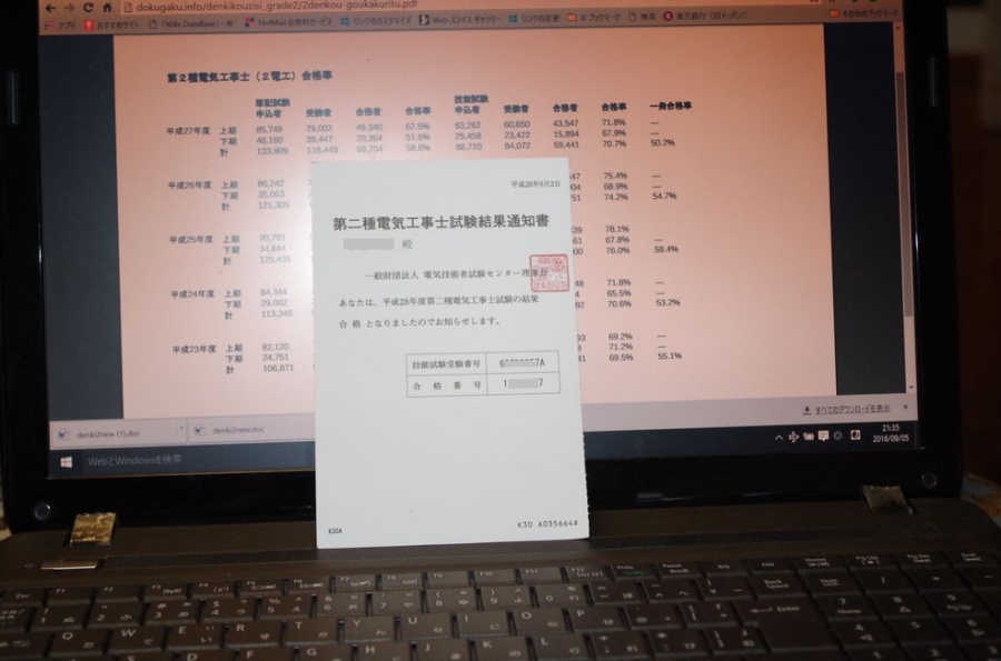 第2種電気工事士の合格通知が届きました!