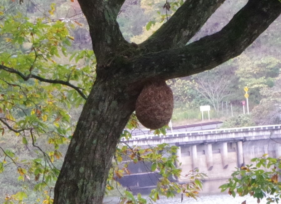 ところが一周まであとわずかなところでキイロスズメバチの巨大な巣。w(°o°)w